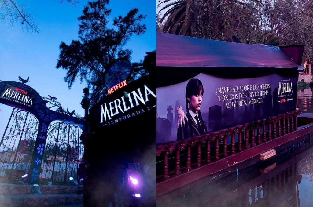 Para celebrar el estreno de la segunda parte de la temporada 2 de “Merlina”, Netflix instaló una trajinera temática en el lago de Xochimilco. La trajinera y un portón metálico decorado en negro, blanco, violeta y café pueden visitarse gratis y estarán disponibles hasta hoy 16 de septiembre, ¡aprovechen!.