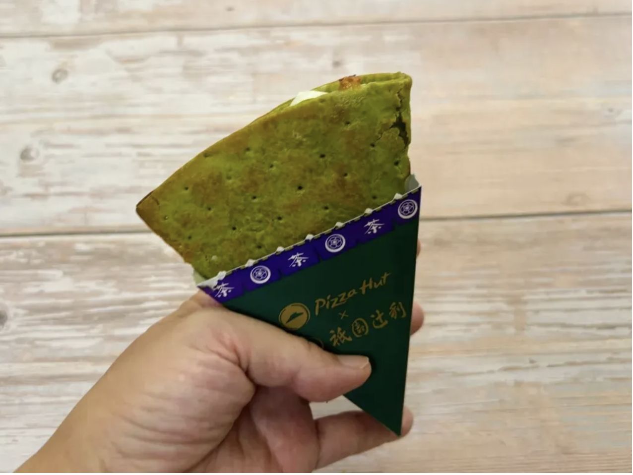Así es, lo leíste bien… pizza y matcha, matcha y pizza. La cadena presentó su postre Handy Melts Matcha Shiratama Kuromitsu, una rebanada triangular con masa infusionada de matcha de Gion Tsujiri y relleno de pasta dulce de té verde, bolitas de arroz shiratama, queso mozzarella y crema. El twist lo aporta el jarabe de azúcar moreno kuromitsu que se sirve aparte.