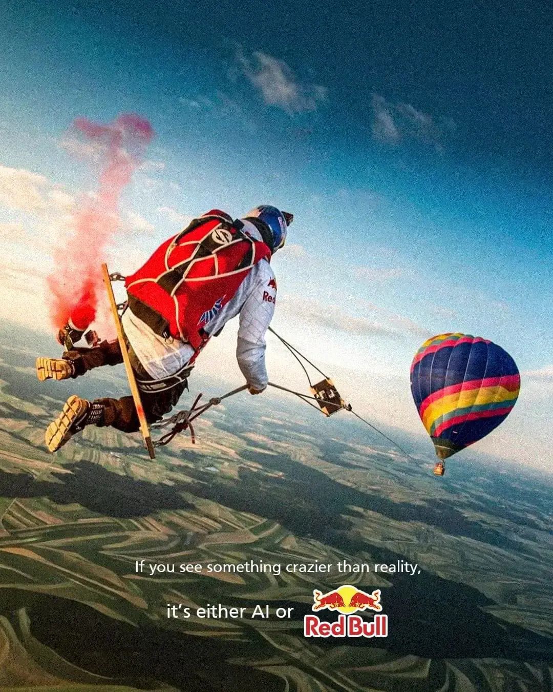 Una campaña global que mezcla el humor con el auge de la IA, bajo una premisa simple pero poderosa: si algo parece más loco que la realidad, probablemente sea IA… o Red Bull.